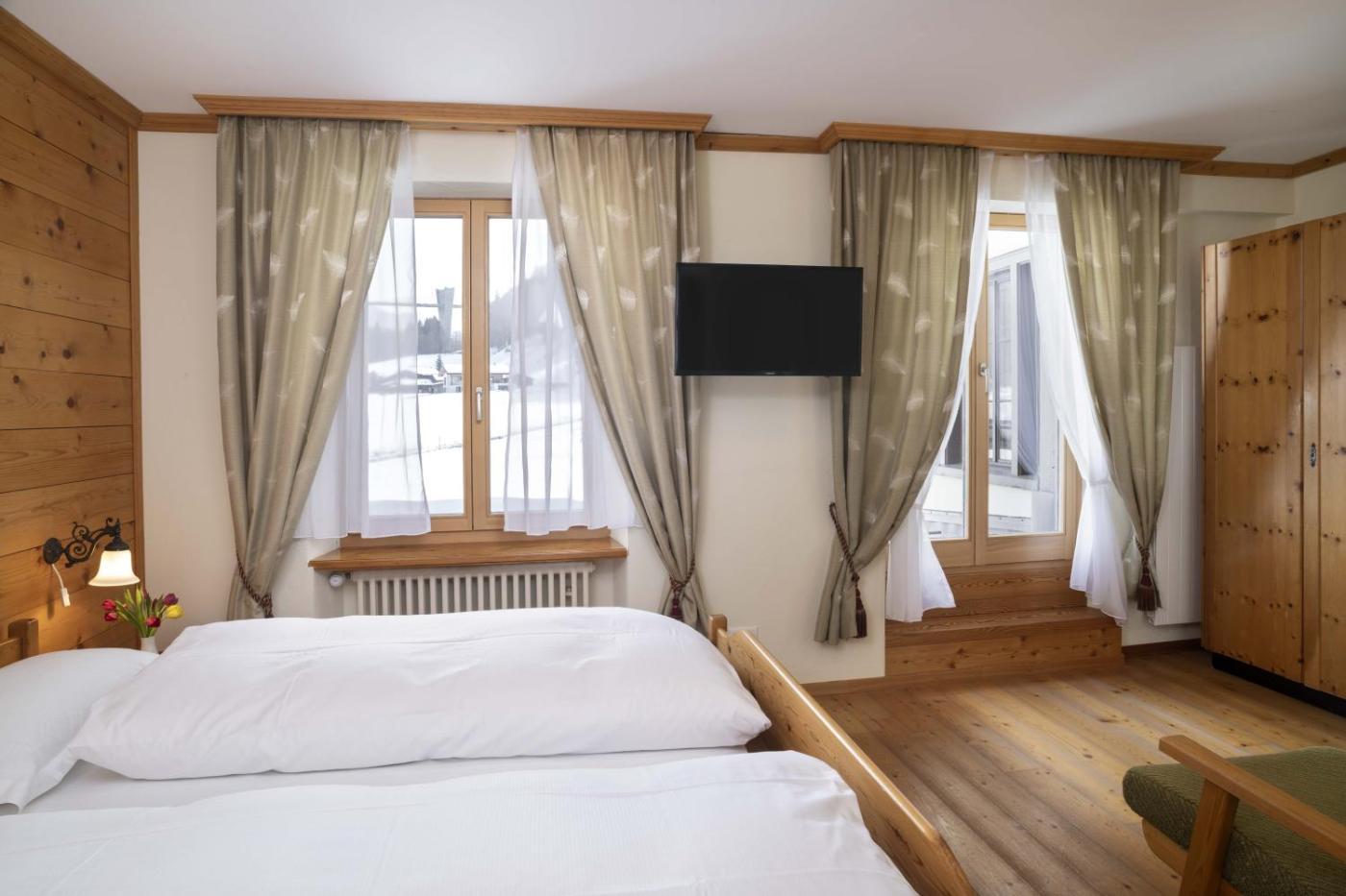 Double Room with Balcony. This double room features a pool with a view and a sauna. Featuring free toiletries and bathrobes, this double room includes a private bathroom with a walk-in shower, a bath and a hairdryer. The spacious double room features a seating area, a dining area, a wardrobe, a flat-screen TV, as well as mountain views. The unit has 2 beds. ;